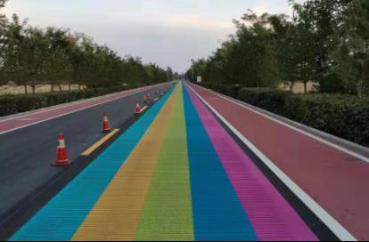 彩色路面有很多種建造方法,主要作用是色彩醒目提示、色彩功能分區(qū)、增加路面抗滑值,從而達到美化城市環(huán)境,以及保障行車安全的目的。