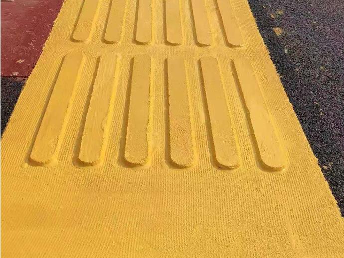 聚合物現(xiàn)澆金剛盲道是一種新型盲道技術(shù),可在傳統(tǒng)的黑色瀝青混凝土和灰色水泥混凝土的路面上現(xiàn)場澆筑施工。